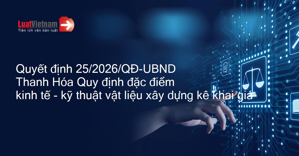 Quyết định 25/2026/QĐ-UBND Thanh Hóa Quy định đặc điểm kinh tế - kỹ thuật vật liệu xây dựng kê khai giá