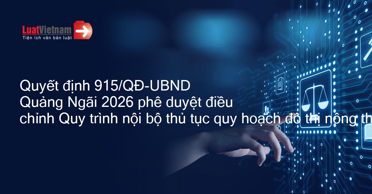 Quyết định 915/QĐ-UBND Quảng Ngãi 2026 phê duyệt điều chỉnh Quy trình nội bộ thủ tục quy hoạch đô thị nông thôn