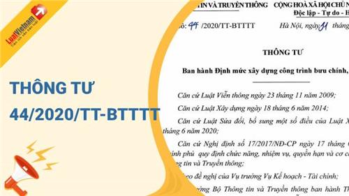 Ngày 31/12/2020, Bộ Thông tin và Truyền thông ra Thông tư 44/2020/TT-BTTTT về việc ban hành Định mức xây dựng công trình bưu chính, viễn thông.