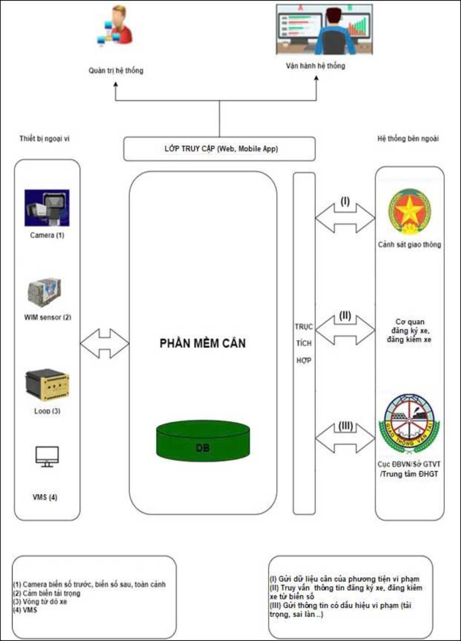 2.7.4. Hệ thống phần mềm xử lý dữ liệu cân và phần mềm tự động nhận diện biển số xe qua hình ảnh camera được tích hợp thành một hệ thống tự động, tích hợp toàn bộ các thông tin, dữ liệu thu được; truy xuất thông tin dữ liệu đăng ký, đăng kiểm của xe trong cơ sở dữ liệu về trật tự, an toàn giao thông đường bộ hoặc cơ sở dữ liệu của các cơ quan quản lý nhà nước về đăng ký xe, đăng kiểm phương tiện; xác định được các thông số, dữ liệu cân khối lượng xe, phân loại xe, thời gian, tốc độ, địa điểm xe qua thiết bị cân, làn đường đặt thiết bị cân, nhận diện biển số xe, phân tích các hình ảnh hoặc tín hiệu để phát hiện các xe vi phạm quy tắc giao thông đường bộ, thống kê, báo cáo; đáp ứng yêu cầu liên kết, truyền dẫn, khai thác và sử dụng dữ liệu cân của cơ quan quản lý công trình KSTTX và cơ quan quản lý có thẩm quyền; bảo đảm tính toàn vẹn, đầy đủ và liên tục của dữ liệu cân.