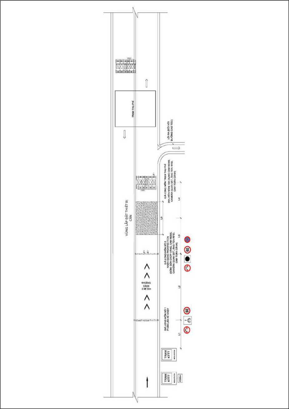 Hình A-4: Sơ đồ minh họa mô hình công trình KSTTX (nhiều làn, trước trạm thu phí)