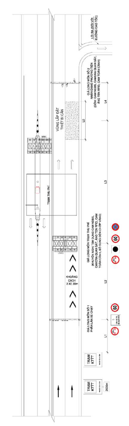 Hình A-3: Sơ đồ minh họa mô hình công trình KSTTX (01 làn, trước trạm thu phí)