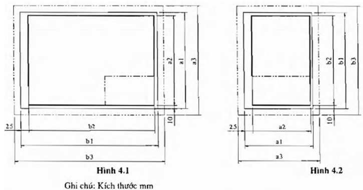 3.1.1. Kích thước các khổ cơ bản của bản vẽ thủy lợi được quy định trong Bảng 3.1 và trình bày ở Hình 3.1.