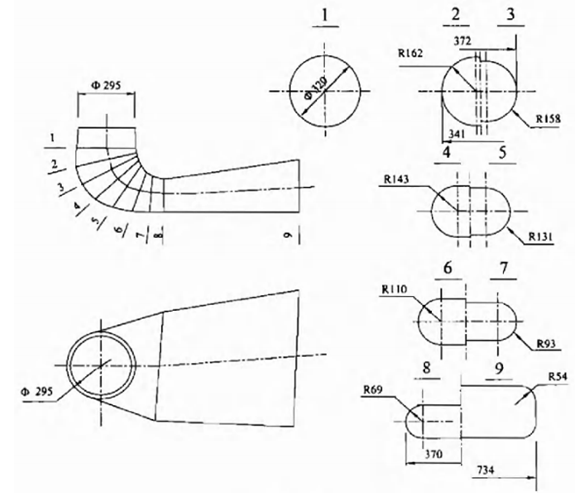 16.1.3. Trường hợp không thể biểu diễn trọn vẹn một hình trên một bản vẽ thì có thể sử dụng đường chắp nối và biểu diễn các phần liên tục của hình đó trên những bản vẽ kế tiếp nhau. (xem Hình 16.1).