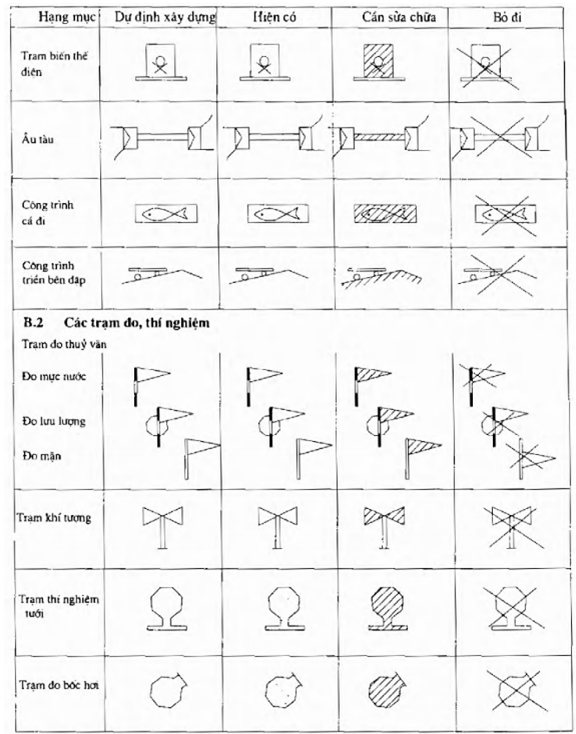 Hình B.2 – Ký hiệu công trình trên kênh