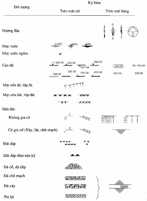 CÁC KÝ HIỆU DÙNG TRONG BẢN VẼ THỦY LỢI