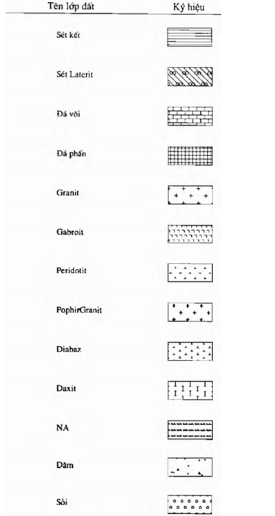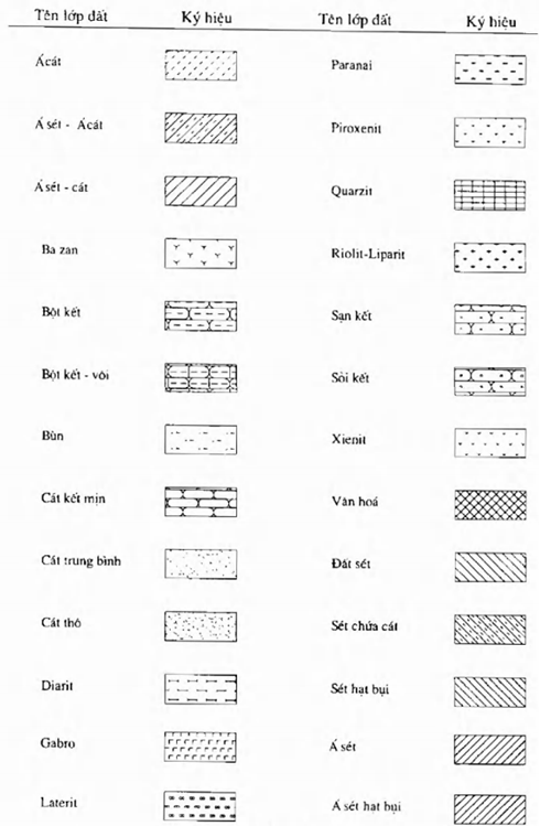 Bao gồm ký hiệu các lớp địa chất như á cát, á sét, bột kết, cát thô… (xem Hình B.4).
