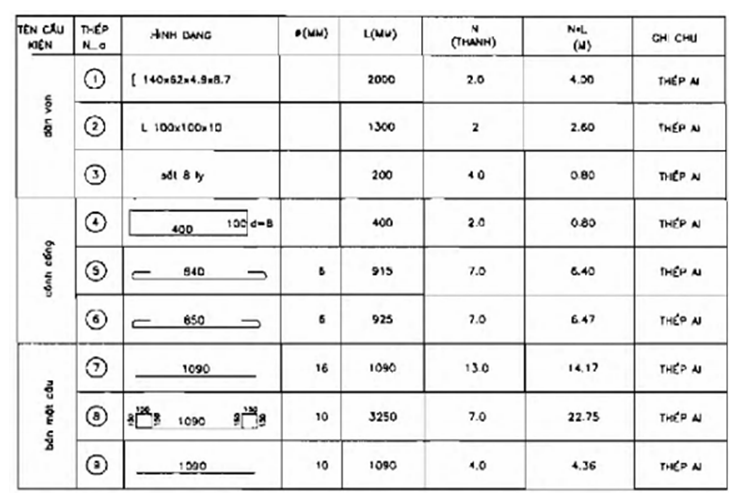6. BẢNG KHỐI LƯỢNG THÉP