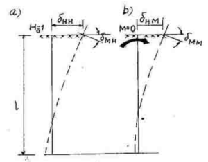 Ở đây, tất cả các ký hiệu đều giống như những công thức nêu ở trên. Dấu “âm” có nghĩa là với lực ngang H hướng từ trái sang phải, mômen truyền lên đầu cọc từ phía ngàm có hướng ngược với chiều kim đồng hồ.