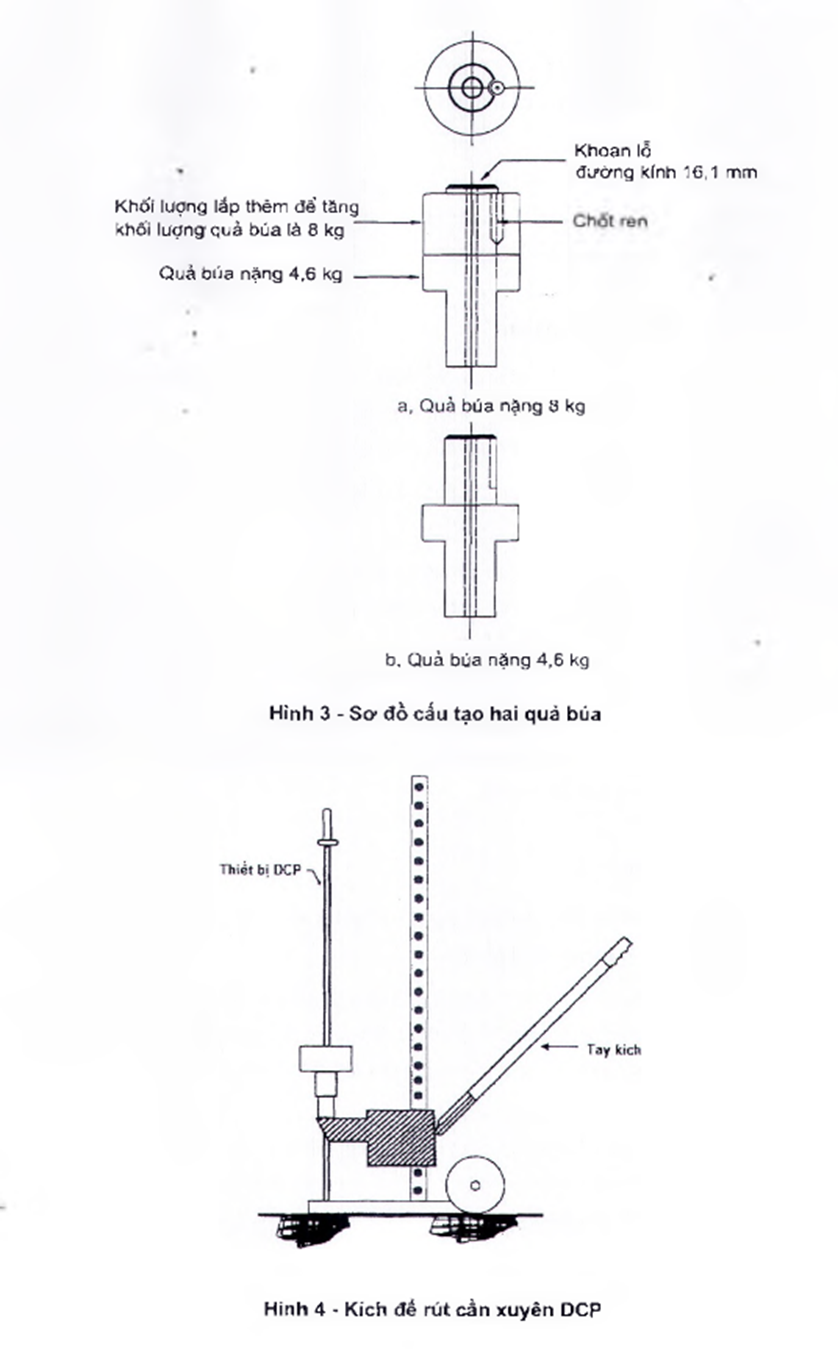 CHÚ THÍCH: Khi sử dụng quả búa nặng 4,6 kg thì chỉ số DCP sẽ được nhân đôi để tính toán CBR hiện trường.