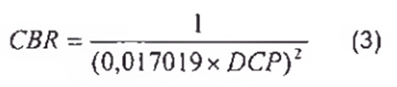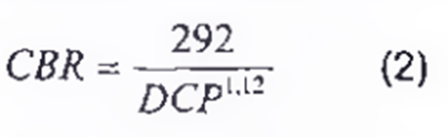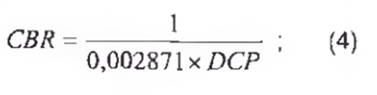 Biểu thị sức chịu tải của các lớp vật liệu dạng hạt ứng với trạng thái độ ẩm, độ chặt thực tế của các lớp vật liệu đó tại thời điểm khảo sát. CBR hiện trường được xác định trên cơ sở kết quả thử nghiệm DCP và quan hệ DCP-CBR hiện trường được xác lập tại công thức (2), (3) và (4) trong tiêu chuẩn này.