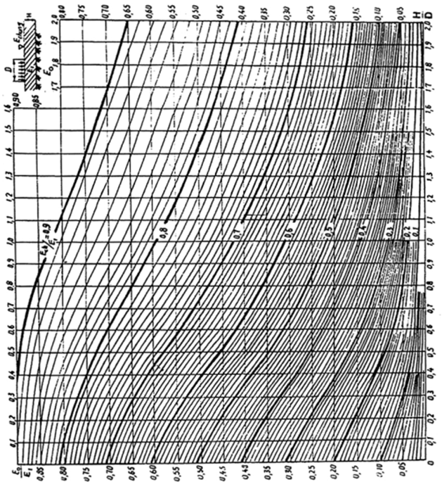 Hình E.3 - Biểu đồ xác định hệ số đáy kênh dưới tác dụng của dòng chảy