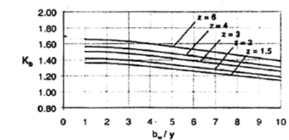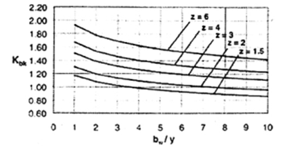 + Kb Hệ số đáy kênh của lực kéo, được tra từ toán đồ phụ thuộc vào tỷ số bề rộng đáy kênh (bw)/ độ sâu mực nước thiết kế (y) với độ dốc của mái kênh (z - hay là m):