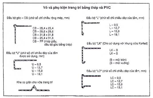 ASTM C1047, Specification for Accessories for Gypsum Wallboard and Gypsum Veneer Base (Yêu cầu kỹ thuật của các phụ kiện cho tấm thạch cao tường và các tấm trang trí thạch cao);