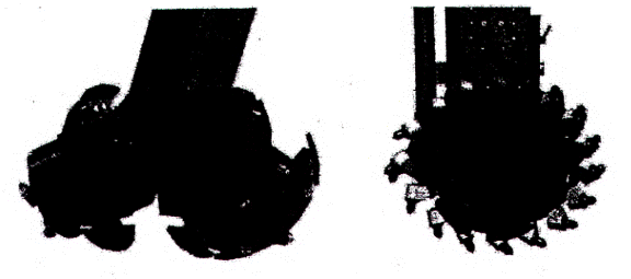 Thiết bị trộn được ghép với một máy đào cho phép thực hiện tốt công tác xử lý tới độ sâu 7m đến 8m. Chất liên kết được đưa vào đất thông qua hệ thống máy bơm áp lực và hệ thống vòi phun tại đầu các thiết bị trộn. Trống quay (Hình C.2) có tác dụng trộn đều chất liên kết và đất. Quá trình trộn được thực hiện theo sơ đồ di chuyển trống quay từ trên xuống dưới, từ sau ra trước theo hướng di chuyển của máy thi công.