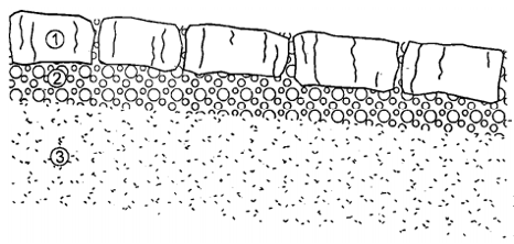 D.3 Nếu nước dưới hố móng phun lên thì phải rải từ một lớp dăm sỏi 15 cm, đến lớp lưới polymer (xem 4.2.6.2) rồi mới rải cát.