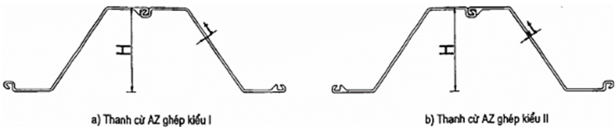 5.2.1.1 Cừ thép: Mặt cắt chữ SP, U, Z, AS, M, HM dạng tấm mỏng và mặt cắt ống tròn. Vật liệu chế tạo bằng thép theo tiêu chuẩn có bố trí khớp nối liên kết.