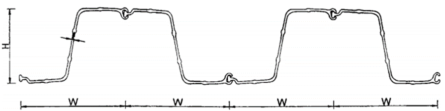 c) Chi tiết đặc trưng mặt cắt các loại cừ thép tham khảo Phụ lục B.
