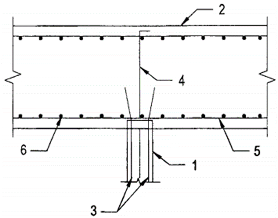 | 1 Mặt tường trụ; | 2 Cừ thép chôn sẵn; | 3 Thép bu lông; |