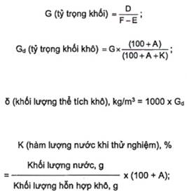 Để xác định khối lượng thể tích (δ) của mẫu, (kg/m3), lấy tỷ trọng khối khô Gd nhân với 1000 (xem Bảng A.1).