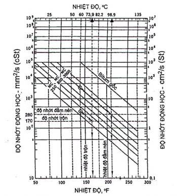 Hình B.1 - Quan hệ giữa nhiệt độ với độ nhớt của nhựa đường lỏng MC (được chế tạo từ cùng một loại nhựa đường)
