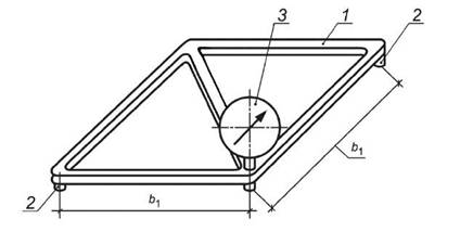 B.2.4 Khung đo độ phẳng cấu tạo như Hình B.1 phù hợp với kích thước mẫu đo. Dụng cụ có thể tì lên bề mặt viên mẫu tại 3 điểm ở 3 góc, góc thứ tư có lỗ để lắp đồng hồ hoặc thiết bị đo.