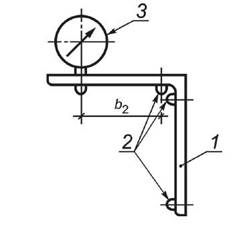 B.3.3.1 Áp ba điểm tì cố định của khung đo (Hình B.2) lên thước ke vuông góc sao cho hai điểm tì tì vào một cạnh của thước, còn điểm thứ ba tì lên cạnh còn lại. Đọc chỉ số trên đồng hồ đo được O3.