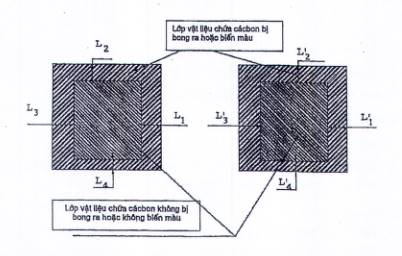 Cắt đôi mẫu thử theo hướng trục của mẫu thử. Dùng thước cặp đo chiều dày của lớp vật liệu bị bong ra kể cả lớp carbon bị biến màu. Để xác định các giá trị L1, L2, L3, L4, L▪1, L▪1, L▪2, L▪3 và L▪4 trên các cạnh tương ứng đo các giá trị khác nhau để tính trung bình cộng xem Hình 2.
