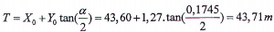 - Tính được các tiếp tuyến T 1 = 45.83 m và T 2 = 41.59 m