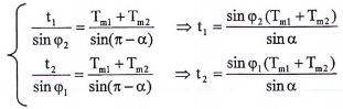 Xác định t 1 và t 2 từ định lý hàm số sin trong tam giác AĐB: