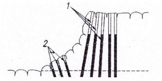 Nổ mìn viền tạo mặt biên phẳng, hàng mìn viền nổ trước có tác dụng bảo vệ biên hố đào.