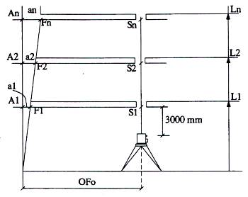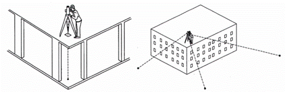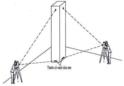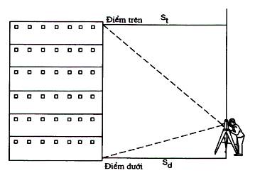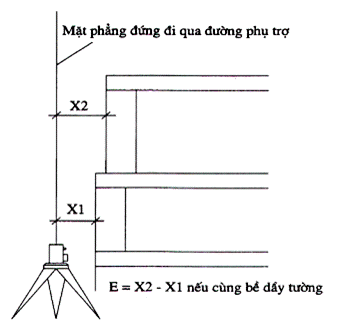 Hình 18 - Phương pháp xác định độ nghiêng công trình bằng mặt phẳng thẳng đứng khi sử dụng máy kinh vĩ