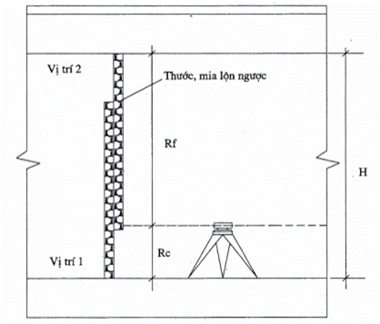 Phương pháp đo chênh cao giữa 2 điểm bằng một tia ngắm nằm ngang của máy thủy chuẩn.
