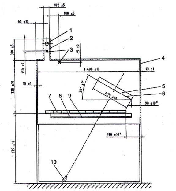 Buồng thử nghiệm được làm từ tấm calci silicat dày (13 ± 1) mm và khối lượng thể tích từ 650 kg/m3 đến 750 kg/m3, có gắn một tấm thủy tinh chống cháy kích thước (110 ± 10) mm x (1 100 ± 100) mm ở mặt trước để có thể quan sát toàn bộ chiều dài mẫu thử trong thử nghiệm. Buồng thử nghiệm phải bọc kim loại bên ngoài. Phía dưới cửa sổ quan sát có cửa thao tác để đưa mẫu thử vào và lấy mẫu ra ngoài sau khi thử nghiệm.