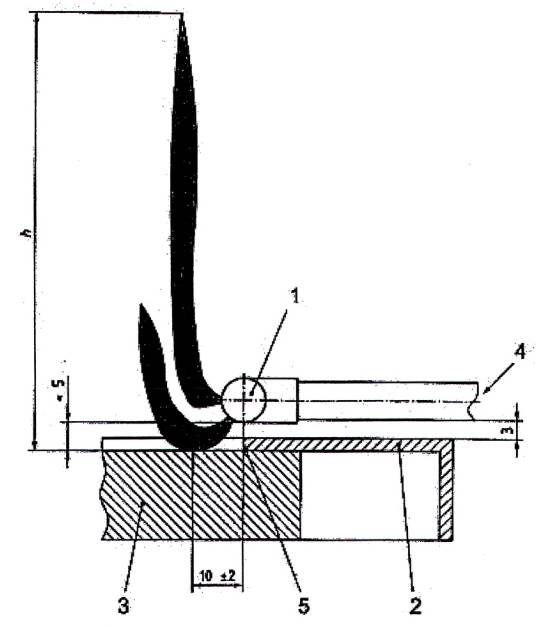 Hình 8 - Vị trí đặt đầu đốt ngọn lửa mồi phía trên mẫu thử trong giai đoạn bắt cháy