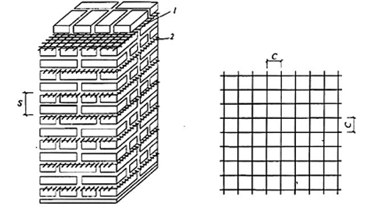 a) Cốt thép ngang của tường được bố trí phân bố ở các mạch vữa của khối xây;