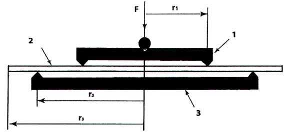 Khi tải trọng F nhỏ (tùy thuộc vào các giá trị của r1( r2, r3 và h) ở phần giữa của bề mặt bị uốn lồi của mẫu xuất hiện một trường ứng suất kéo đồng đều theo mọi hướng trong phạm vi vòng tải trọng.