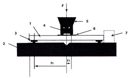 Tải trọng F tăng sao cho ứng suất uốn ở giữa mẫu tăng với tốc độ (2 ± 0,4) MPa.s cho đến khi mẫu vỡ.