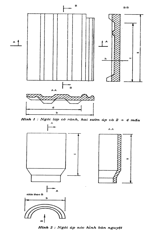 Chú thích: Hình dạng bề mặt của viên ngói trên các hình vẽ chỉ có tính chất quy ước.