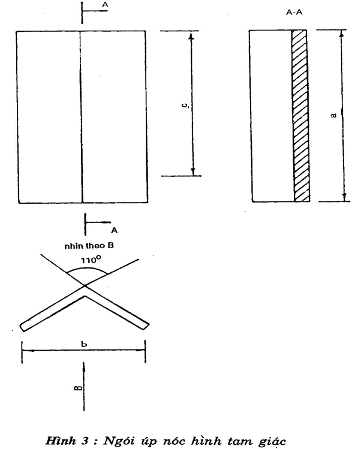 | Ngói úp nóc hình tam giác | 380 | ± 5 | Không quyđịnh | 330 | ± 5 | 200 | ± 3 |
