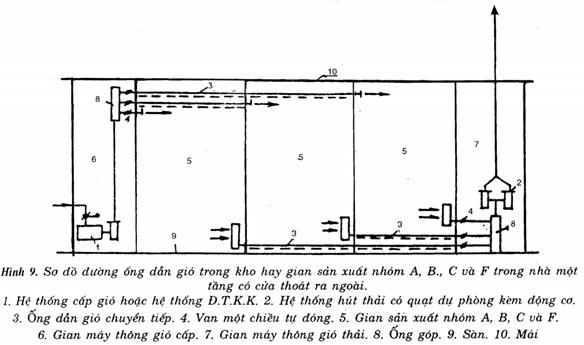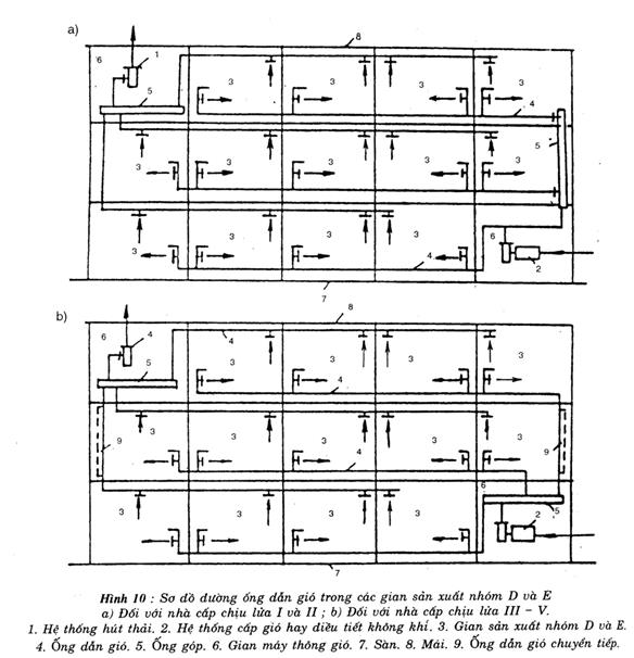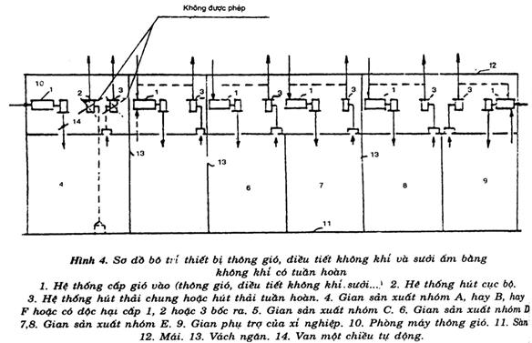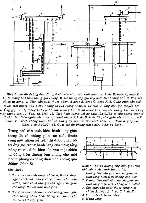 1.12 Các giải pháp không gian - mặt bằng nhà và công trình sản xuất thuộc nhóm A, B và F nơi có khả năng tạo thành các chất nổ và cháy (hơi, khí và bụi), cũng như nhà và công trình có nguồn độc hại và nhiệt dư bốc ra trên 20 kcal/m3.h phải được cấu tạo sao cho trong nhà không hình thành những vùng, những "túi" không thông thoáng.