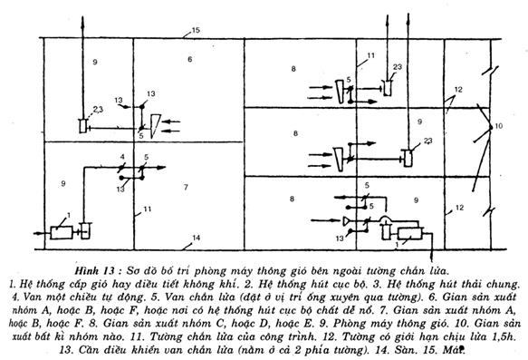 1.7 Đối với nhà và gian sản xuất nhóm A, B, C và F và nhà công cộng cần tạo điều kiện cắt từ bảng điều khiển, tủ điều khiển hay từ nút bấm các hệ thống thông gió cơ khí,