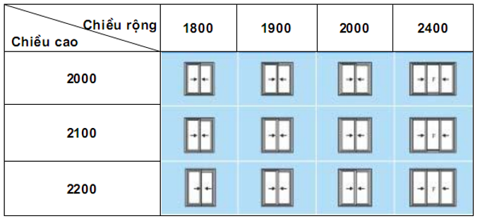 Hình A.7 - Kích thước thông dụng của cửa đi mở trượt
