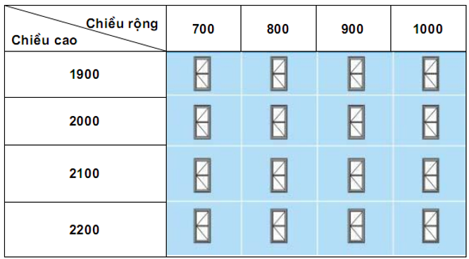 Hình A.6 - Kích thước thông dụng của cửa đi hai cánh mở quay