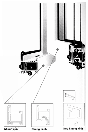 Kết cấu khung làm từ thanh profile có thép gia cường, có kích thước xác định, làm khung vững chắc cho cánh cửa, gắn kết với khuôn cửa bằng hệ thống liên kết cửa (3.7).