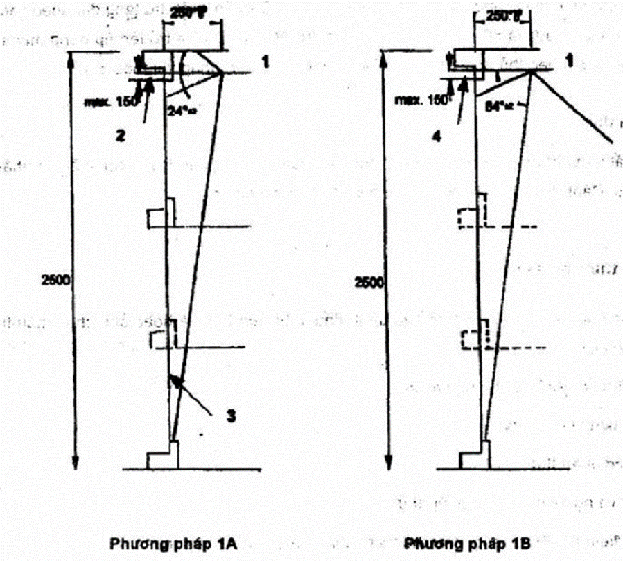 )° so với đường nằm ngang khi thử theo Phương pháp 1A và nghiêng một góc 84° ± 2° khi thử theo Phương pháp 1B; xem Hình 1.