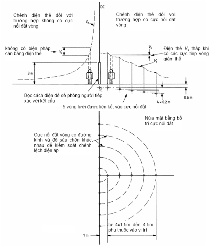 3.6 Cực nối đất mạch vòng: Cực nối đất tạo ra một vòng khép kín xung quanh công trình ở dưới hoặc trên bề mặt đất, hoặc ở phía dưới hoặc ngay trong móng của công trình.