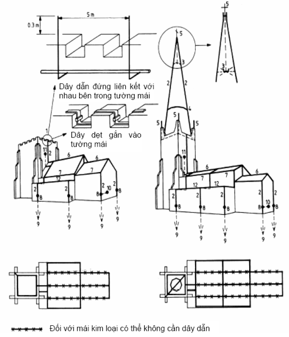3.1 Hệ thống chống sét: Toàn bộ hệ thống dây dẫn được sử dụng để bảo vệ một công trình khỏi tác động của sét đánh.