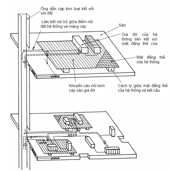 3.3 Mạng nối đất: Một bộ phận của hệ thống chống sét nhằm mục đích tiêu tán dòng điện sét xuống đất.