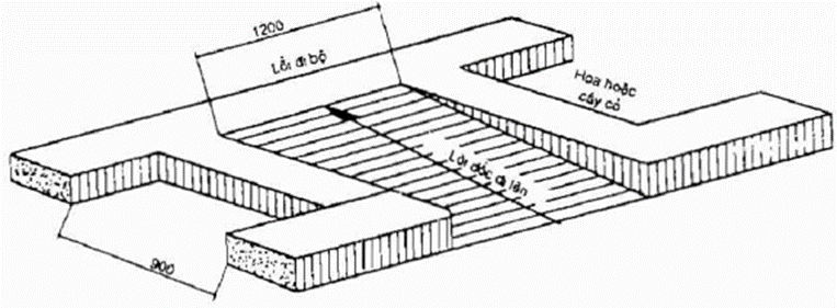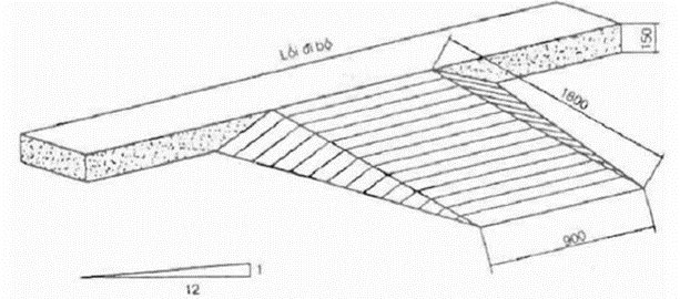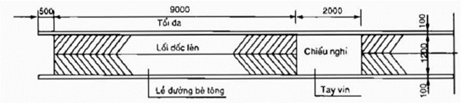 - Chiều rộng đường dốc không nhỏ hơn 1000mm đến 1200mm;